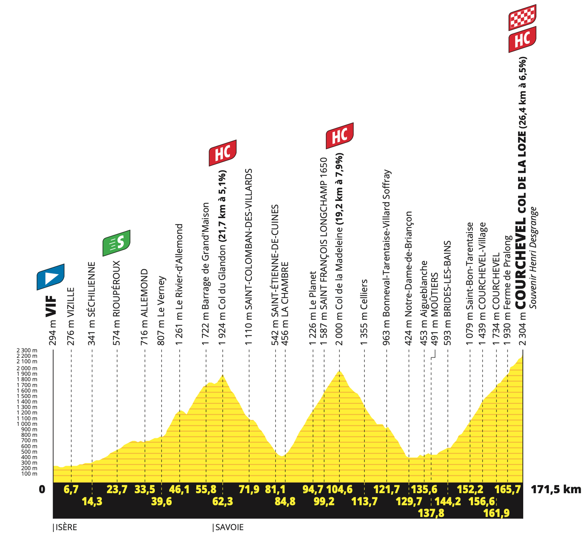 至于被ASO官方钦定为皇后赛段的第十七赛段,其残酷性从这些如雷贯耳的山名就可见一斑:格朗东山口、玛德莱娜山口,以及终点所在的洛兹山口。发车后主车群将直扑阿尔普迪埃,但在最后时刻左转驶上D526公路,不久后便抵达格朗东山脚的奥兹村。