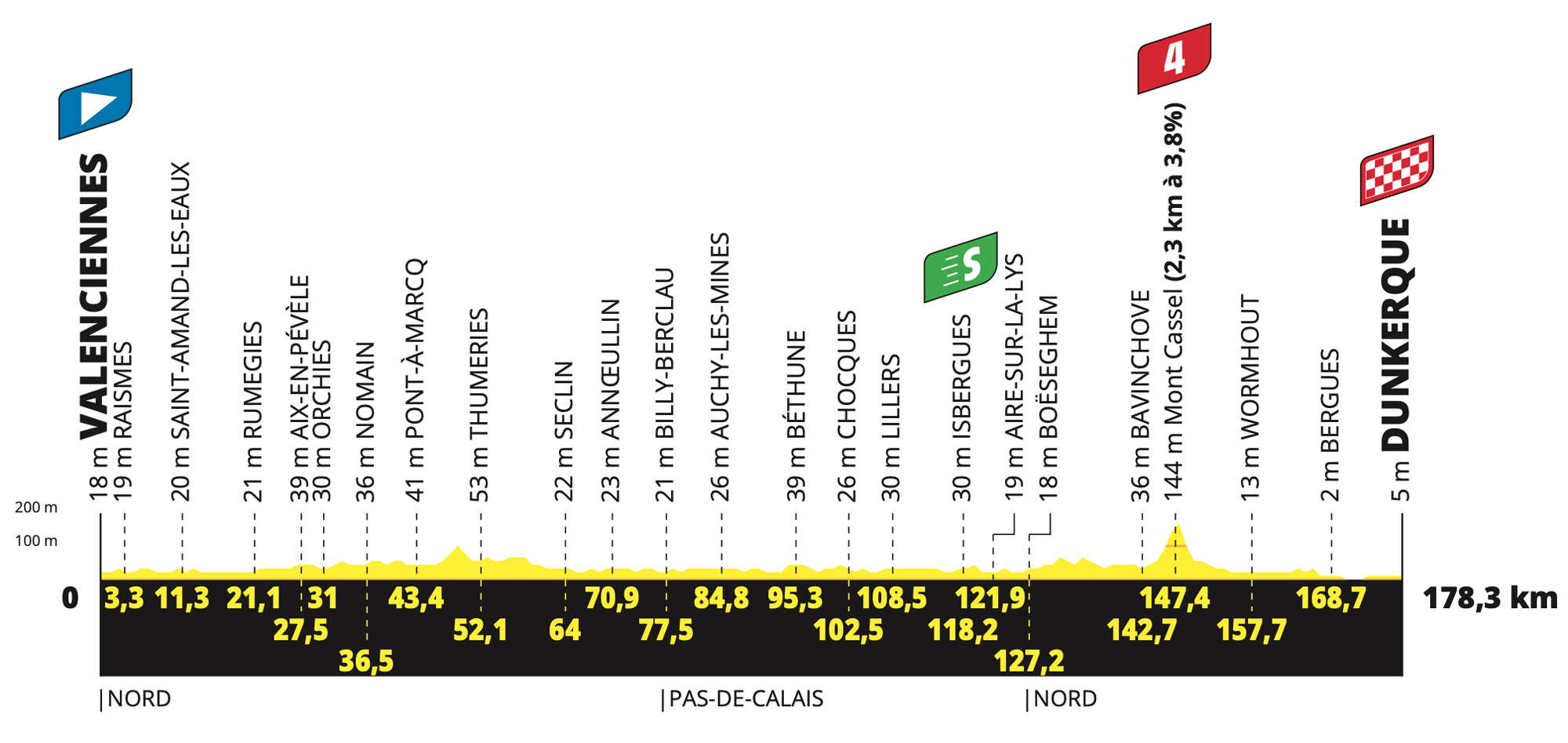 课程的最后一部分是完全平坦的。只有风才能在这里造成危险。Pas-de-calais以其开阔的平原而闻名,因此它将是一个令人讨厌的地方。终点位于敦刻尔克,这座城市以其港口和历史悠久的敦刻尔克海滩而闻名,在第二次世界大战中发挥了重要作用。