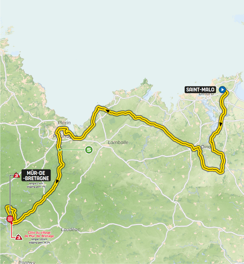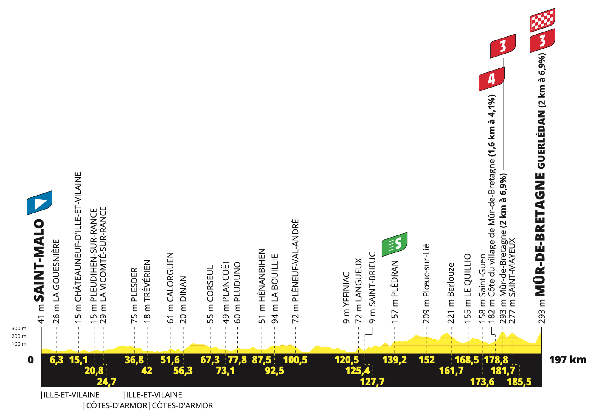 回到现在,回到圣马洛。在那里,第七阶段计数194公里,从圣马洛到历史悠久的mû r-de-bretagne。从那时起,随着尾巴的刺痛,一个滚动的旅程等待着。在长度为2公里,平均坡度为6.9% 的墙壁的最后一次攀爬中,可能会决定阶段。