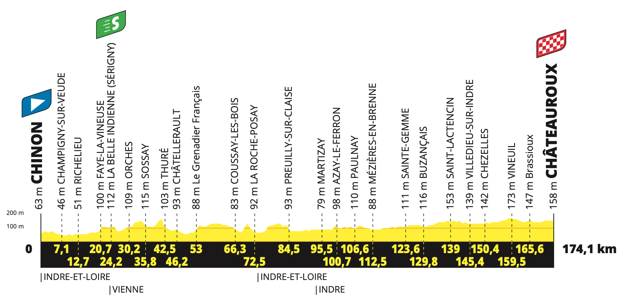 2025环法自行车赛的第九阶段也呼吸着冲刺,因为车手们在距离Chinon 170公里的平坦赛段中进行比赛-法国国王查尔斯七世居住在同名的Chinon城堡-冲刺热点ch â teauroux。如果我们在这里没有大规模冲刺,所有冲刺队不妨乘火车回家。关于这个阶段的过程,我们可以简短。这是一条向东到ch â teauroux的平坦线,没有值得注意的山丘。周日唯一的危险在于风,但前提是风是对的。