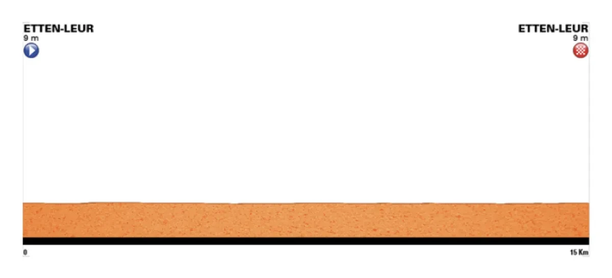 在计时赛进行到一半时,路线通过Munnikenheide小村庄向etten-leur返回,该村庄紧邻Brabant自行车小镇Sint Willebrord。在最后一公里,车手返回etten-leur,终点线位于热闹的市中心,周围环绕着露台和历史建筑。