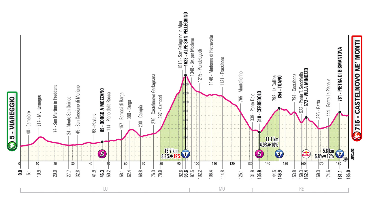 对于休息日之后的第一个道路阶段,该组织设计了一个相对容易开始的阶段,但是在185公里的八十公里之后,地形发生了很大变化。舞台上有三个艰难的攀登,其中第一个是迄今为止最具挑战性的。