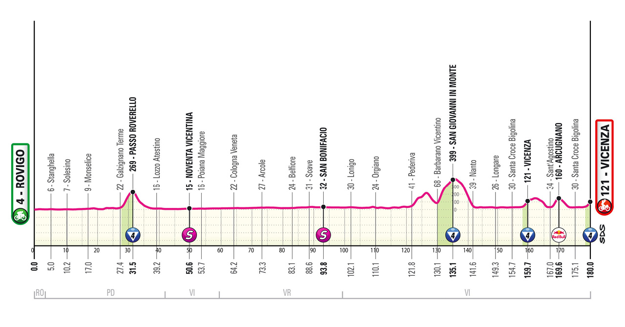 真正打孔机的舞台,这就是我们在第十三阶段得到的。舞台的重头戏是整个结局中第四类的四个短山,其中最重要的是Monte Berico的陡峭墙壁,Philippe Gilbert在Giro d'Italia 2015年中获得了成功。