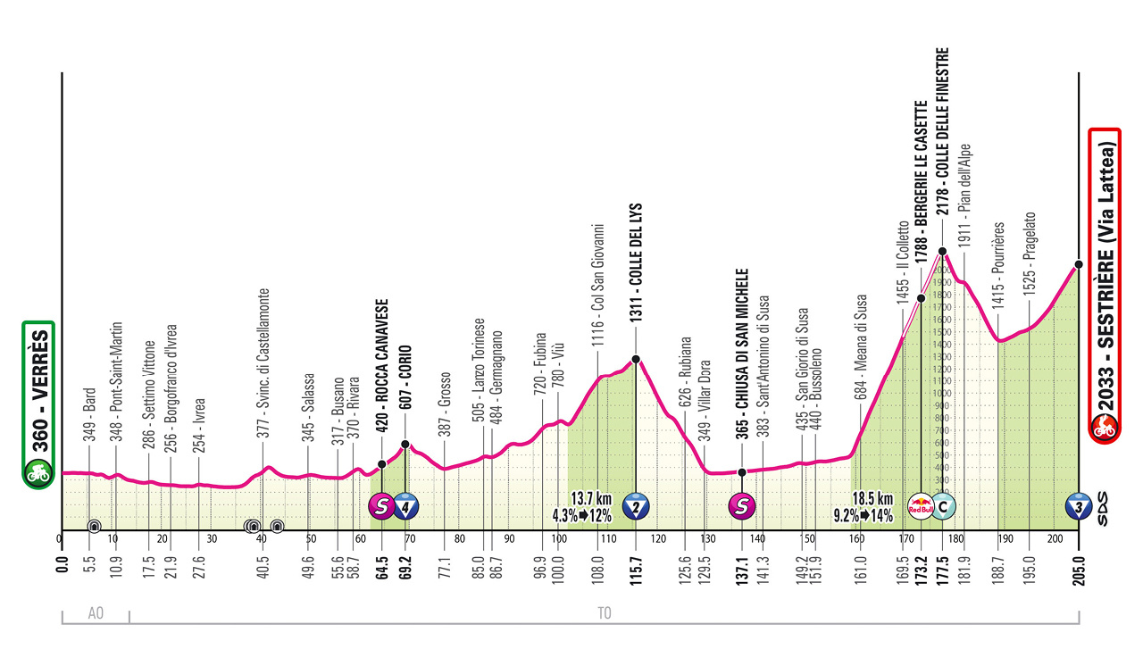 女王舞台一词通常适用于巡回赛中最艰难的阶段。但是在Giro d'Italia 2025中,这确实是倒数第二阶段的名称。虽然没有以前的第十九阶段那么困难,但由于过去的两次著名攀登,这是神话般的。奥斯塔山谷的小村庄verr è s是这一阶段的起点。Verr è s的吸引力是在那里发现的中世纪城堡。尽管名气相对不大,但当地的玉米粥,汤,南瓜和奶酪确实享有一定的知名度。此外,verr è s的山区环境是各种葡萄园的所在地。