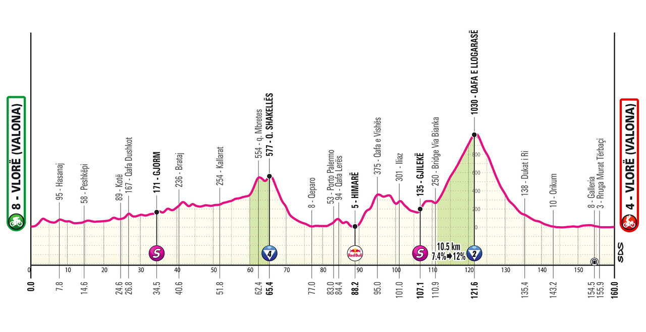 阿尔巴尼亚土地上的最后阶段在vlor ë 开始和结束,vlor ë 是该国第六个历史悠久的城市。意大利城市。再次,将有大量的攀登。这次在160公里内不少于2800海拔高度米。