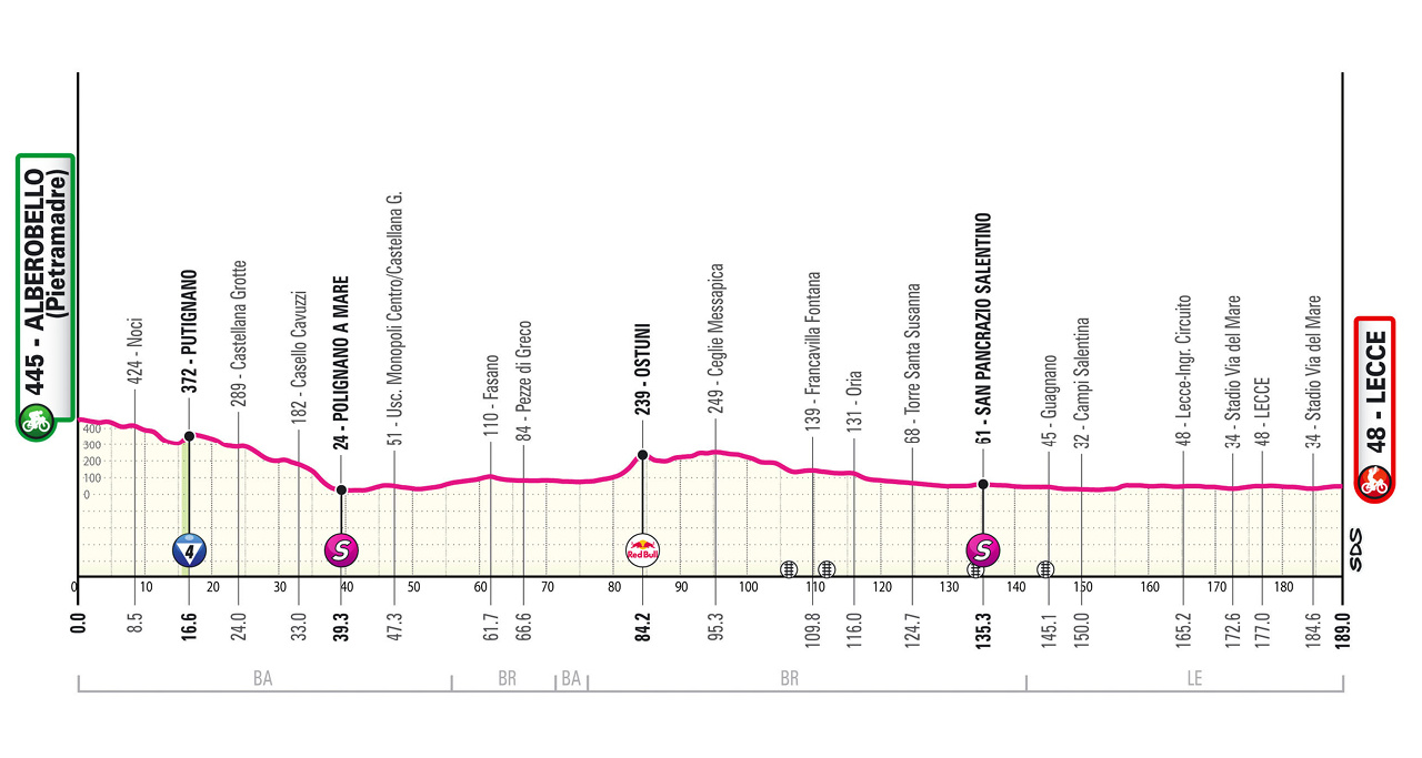 休息一天后,意大利环法自行车赛于周二越过亚得里亚海的另一侧,到达普利亚,这是吉罗的第一次大规模冲刺。