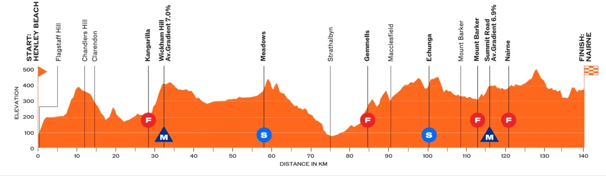 距离 140.8 公里,从亨利海滩开到奈恩。这条起伏路线包含两个 KOM 爬坡,总爬升近 2500 米,非常适合速度快的选手。